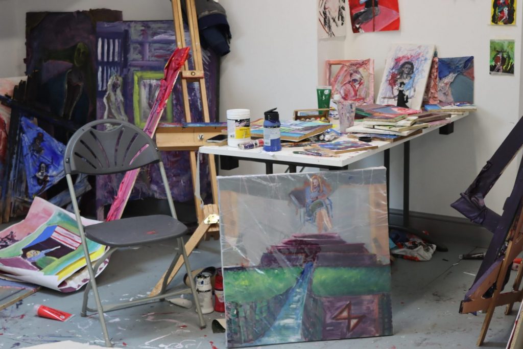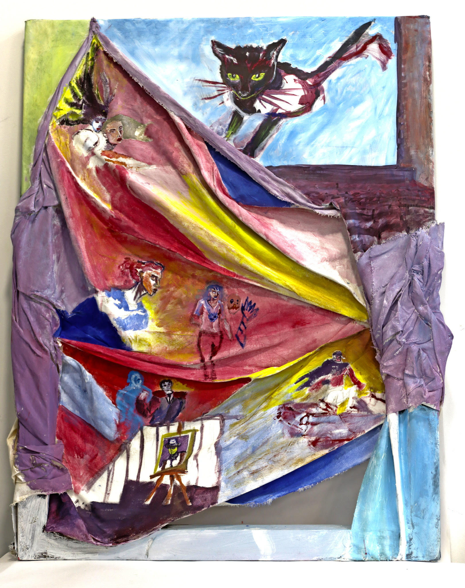 My process involves analytical thinking towards film imagery colliding with an abstracted canvas. Amazing scenes from films create images that strike me and stay with me. I process these scenes through my painting and drawings, creating my own scenery through the analysis of drawing, imagination and folding the image around the canvas. The three dimensionality of the canvases bring life to the paintings, requiring the viewer to take more than one view of the pieces and adapt their interpretations of what they may at first see in a sculptural form.